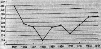 Рис. 11. Динамика валового сбора зерновых культур в регионе за 1985-1994 гг.