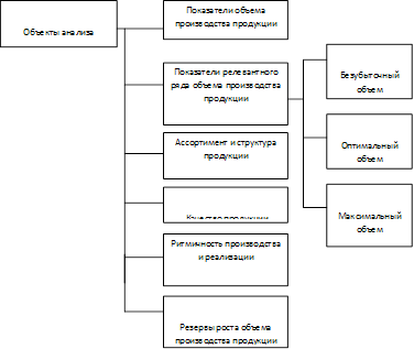 Рисунок 1.1 - Объекты анализа объема производства и реализации продукции