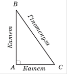 Сторона прямокутного трикутника, протилежна прямому куту, називається гіпотенузою, дві інші сторони називаються катетами (рисунок 6.1).