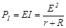 Е – е.р.с. джерела енергії; r – внутрішній опір цього джерела; R – зовнішній опір електричного кола або опір навантаження. У випадку передачі енергії на значну віддаль опір лінії передачі можна добавити до опору r.