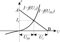 . Точка перетину прямої АВ з вольтамперною характеристикою