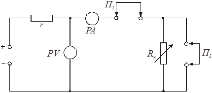 використовують магазин опорів, що розташований у верхній правій частині стенда. Приладами PV i PA є цифрові прилади із комплекту стенда.