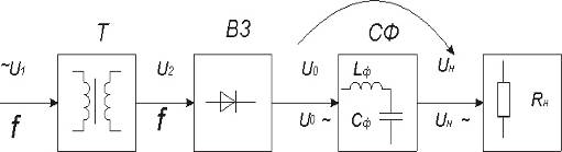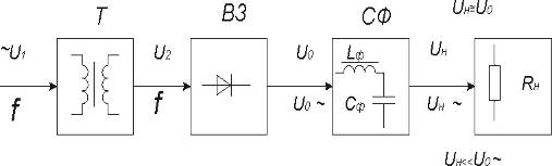 Для преобразования переменного тока в постоянный необходимо располагать вентильными устройствами (элементами с односторонней проводимостью) и электрическими накопители инерционности, роль которых выполняют L и C.