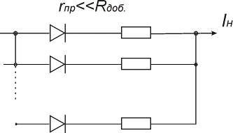 В тех случаях, когда имеющиеся в распоряжении вентили не обеспечивают необходимого тока в нагрузку, применяя параллельное включение нескольких вентилей по следующей схеме (рис 4).