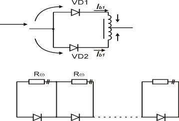Добавляют Rдоб в 2-5 раза больше Rпр. На добавочных сопротивлениях в мощных выпрямителях могут возникать недопустимые рассеивания энергии. В таких случаях возможно для выравнивания тока в вентилях применение индуктивных реакторов (рис 5).