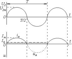 В течение положительного полупериода напряжения u2, когда ток i нарастает, индуктивная катушка Lф запасает энергию, а в отрицательный полупериод – энергия расходуется на поддержание тока.