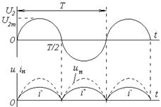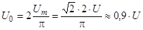 В режиме ХХ (Iн=0) выпрямленное напряжение равно амплитудному значению Umхх, а без фильтра – среднему значению.