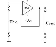 Коэффициент передачи повторителя К = 1.