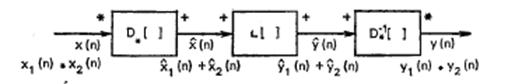 Символ « * » означает свертку в дискретном времени. По аналогии с принципом суперпозиции для обычных линейных систем определим класс систем, удовлетворяющих обобщенному принципу суперпозиции, в котором сложение заменяется сверткой (легко показать, что свертка обладает такими же алгебраическими свойствами, как и сложение: