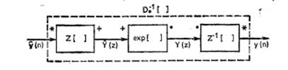 Третий блок является обратным первому, т. е. преобразует сигналы, представленные в виде суммы, в сигналы, представленные в виде свертки. Важность данного канонического представления заключается в том, что разработка гомоморфной системы сводится к разработке линейной системы. Блок, обозначаемый