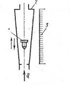 Рисунок 4 – Ротаметр - 1 – поплавок, 2 – конусная трубка. 3 - шкала
