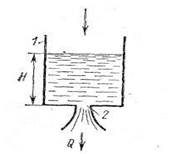 Рисунок 5 – Расходомер переменного уровня, 1 – бак, 2 – отверстие.