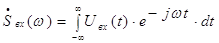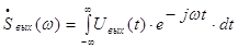 Обозначим входной и выходной сигналы линии как Uвх(t) и Uвых(t) и запишем их спектральные плотности (прямое преобразование Фурье):