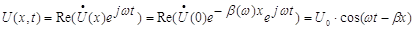 В правой части этого равенства стоит функция времени и длины отрезка линии. Это гармоника той же амплитуды, что и на входе линии, поскольку затухания нет. Аргумент этой функции (wt‑x) в теории длинных линий принято называть «полной фазой». Видно, что для одного и того же момента времени t значение U(x, t) различно для различных точек по длине линии, и мера этого различия определяется значением величины на данной частоте.