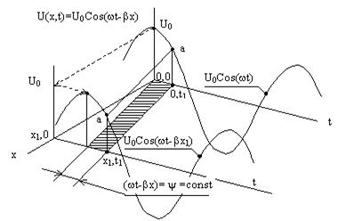 Проследим движение точки «а», соответствующей некоторому замороженному значению полной фазы (wt-x)=j=const, вдоль линии (см. рис. 1).