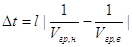 Пусть вычислены Vгр, н для окрестности точки wн и для окрестности точки wв. Тогда абсолютная величина разности времен прихода двух крайних групп к концу линии длиной ℓ составит: