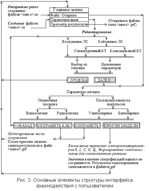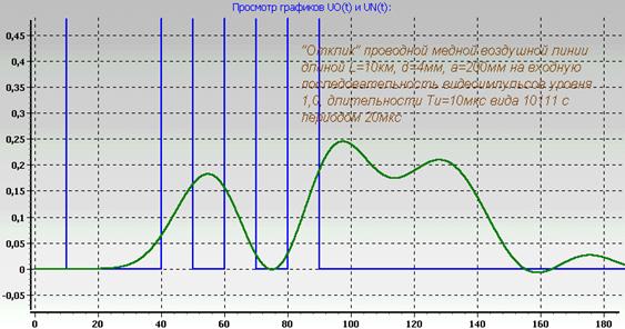 Моделирующая программа LINE2 предназначена для наблюдения на экране монитора «отклика» (выходного сигнала UN(t)) проводной линии связи в ответ на входное воздействие в форме одиночных импульсных сигналов, а также их последовательностей с целью изучения влияния на выходные сигналы параметров линии. Предусматривается возможность исследования воздушных и кабельных линий.