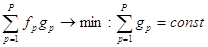 В этих обозначениях задача выглядит так: нужно минимизировать сумму произведений при условии