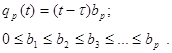 Предположим, что требования принадлежат одному из P различных приоритетных классов, обозначаемых индексом =1,2,3…P. Каждому требованию, находящемуся в системе в момент времени t ставится в соответствие значение некоторой приоритетной функции qp(t). Чем больше значение этой функции, тем выше приоритет требования. Всякий раз, когда принимается решение для выбора требования на обслуживание, выбор делается в пользу требования с наибольшим значением приоритетной функции. В простейшем случае в качестве приоритетной функции выбирается просто значение . В этом случае приоритет требования тем больше, чем больший номер класса принадлежности оно имеет. Рассмотрим достаточно общую модель, основанную на системе M/G/1. Предположим, что требования из приоритетного класса образуют пуассоновский поток с интенсивностью lp требований в секунду. Время обслуживания каждого требования из этого класса выбирается независимо в соответствие с распределением с плотностью вероятности bp(x) со средним значением