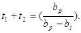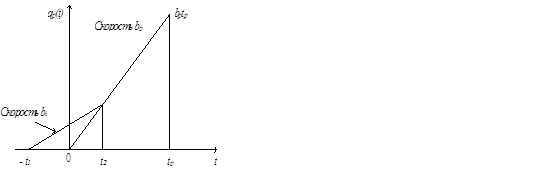 На рисунке 4 показано, что значение функции приоритета этого требования к моменту поступления на сервер будет равно bptp. При поступлении меченого требования оно застает в очереди niтребований из класса i . Одно из таких требований показанное на рисунке 4 поступило в момент t=-t1. Определим теперь среднее число требований из класса i , которые поступают до нулевого значения момента времени, находятся в нулевой момент еще в очереди и получают обслуживание раньше меченого требования. Из рисунка 4 можно видеть, что этому условию удовлетворяет требование из класса i , которое поступает в момент -t1и ожидает в очереди в течение времени