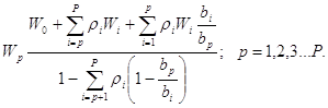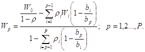 Здесь r интерпретируется как доля времени, в течение которого сервер занят (r<1), а каждый из парциальных коэффициентов rp – как доля времени, в течение которого сервер занят обслуживанием заявок из приоритетного класса с номером .