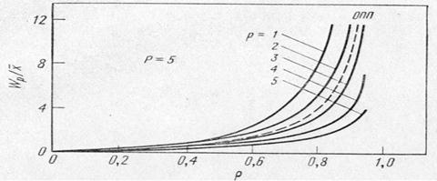 Рис. 2 Обслуживание в порядке приоритетов в случае относительных приоритетов (Р=5, lР= l/5,