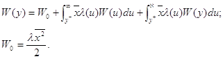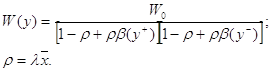 Найдем среднее время ожидания в очереди для требования, внесшего плату Y=y. Это время складывается из трех составляющих. Во-первых, это время на дообслуживание требования, находящегося в данный момент в сервере. Во-вторых – время обслуживания требований, которые поступили раньше и внесли большую или равную плату. Наконец меченому требованию придется ждать обслуживания всех требований поступивших позже его, но внесли большую плату. Среднее число требований, плата которых лежит в интервале (u,u+du) определяется по формуле Литтла :