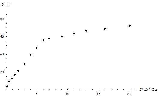 Видно, что графики для К(f) в обоих случаях совпали с теоретическим. Для графиков Dj(f) наблюдается небольшое различие с теорией, т.к. не удалось достигнуть сдвига фаз p/2.