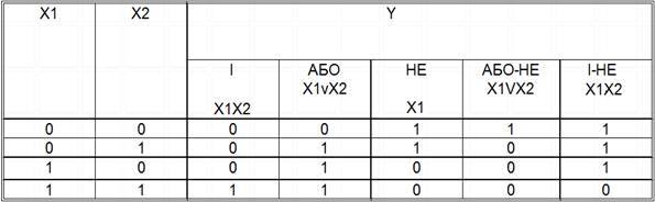 'АБО', 'I-НЕ, 'НЕ' та їх комбінацій»