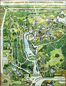 Кожен рік його відвідує близько 500 тисяч людей. Площа — 179,2 га. «Софіївка» являється памятником ландшафтного типу світового садово паркового мистецтва кінця XVIII — першої половини XIX сторіччя. В ній ростн більше 3323 таксонів (видів, форм, сортів, культиварів) міських і екзотичних дерев і кущів, серед них: болотяний кипарис, сосна Веймутова, тюльпанове дерево, платан, гинго, багато іншого. Виданий каталог рослин в якому нараховується 1994 таксона, із них 1220 деревних і 774 травянистих рослин, в тому числі 25 таксонів горішника, 24 — буків, 41 — елей, 100 — ліан, 320 — троянд, 57 — рододендронів, 376 — грунтопокривних і 98 —квіткових рослин. В 2007 году колекция раслин парку включала 2103 таксона деревних і 1212 травянистих. Парк «Софіївка» заснований в 1796 році хазяєном города Умані, польским магнатом Станіславом Потоцьким, назван в честь його дружини Софії Віт-Потоцької і подарований їй до дня народження в травні 1802 року. Автором топографічного і архитектурного проекту і керівником будівництва парку був польский військовий інженер Людвіг Метцель, а всі роботи в парку виконували кріпаки Умані.