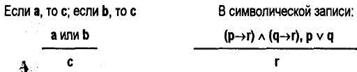 Рассмотрим на примере дилеммы структуру и виды условно-разделительного умозаключения. Различают два вида дилемм: конструктивную (созидательную) и деструктивную (разрушительную), каждая из которых делится на простую и сложную.