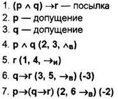 Если в рассуждении содержится более трех переменных, то строить полную таблицу для проверки его правильности затруднительно и тогда используют сокращенный метод проверки, рассуждая от противного. Поскольку при правильном рассуждении формула вида (A1 ^ ... ^ Аn) → В должна быть тождественно истинной, посмотрим, не может ли она при каком-то наборе значений переменных оказаться ложной. Предположим, что может. Если из этого предположения получим какое-нибудь противоречие, то предположение неверно (и проверяемое рассуждение правильно), а если из этого предположения не получим противоречия, то увидим набор значений переменных, при котором формула ложна, т. е. тот набор, который опровергает проверяемое рассуждение.