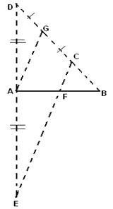 Продолжим прямую АВ за точку В и отложим на ней точку С на расстоянии АВ от точки В. Кроме того, отложим на том же расстоянии от точки В еще две точки Dи Е в двух разных, но не противоположных направлениях (рис. 4). Найдем точку Fпересечения прямых АЕ и CD, а также точку Gпересечения прямых ADи СЕ.
