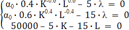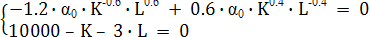 Если в экономику страны, развитие которой описывается функцией P = α0K0.4 ·L0.6 инвестировать S = 50000 у.д.е, то для получения максимального прироста ВВП эти средства нужно распределить так чтобы создать дополнительных L = 2000 рабочих мест и привлечь дополнительно K = 4000 у.д.е. производственных фондов, при условии что известны стоимости единицы труда S2 = 15 и единицы капитала S1 = 5.