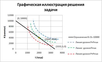 где (P)=у.д.е. – объём ВВП страны, (K)=у.д.е – объём национальных производственных фондов (капитал), (L)=чел. – численность населения страны, занятого в производственной сфере (труд). В развитие национальной экономики инвестируется S у.д.е. Считается, что все средства идут на развитие производства, решить задачу об оптимальном распределении инвестиций по привлечению дополнительных единиц труда и капитала с целью максимального прироста ВВП. Задачу решить методом Лагранжа и графоаналитическим методом, считая, что стоимость одной дополнительной единицы капитала составляет S1, единицы труда – S2, а связь между ними носит линейный характер и может быть описана уравнением S=S1·K+S2·L.