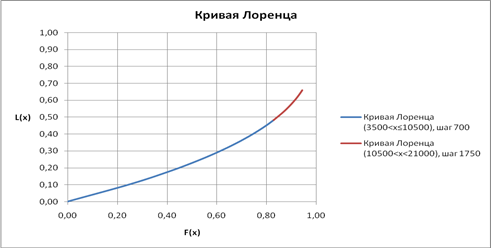Учитывая, что средний относительный доход тех, чей уровень дохода меньше Х, может быть задан функцией: