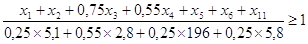 х3≤0,25×68; х4≤0,25×68; х5≤0,25×68;