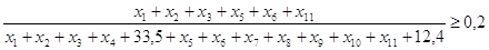 х6≤0,25×68; х7≤0,25×68; х8≤0,25×68;