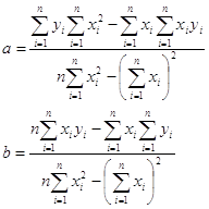 т.е. это будет простая линейная регрессия. Для расчета ее параметров воспользуемся известными формулами: