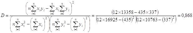 Оценим качество построенной регрессии. Для этого рассчитаем коэффициент детерминации, используя формулу: