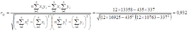 Степень зависимости между исследуемыми показателями оценивается на основании коэффициента корреляции: