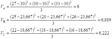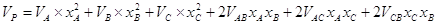 Так как риск портфеля, составленного из акций компаний А, В и С, выражается формулой: