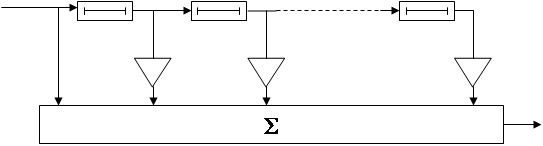 На рис. 1 представлен АР фильтр предсказания (обеляющий фильтр), алгоритм действия которого описывается выражением (3). Он состоит из линий задержки, усилителей с коэффициентами усиления