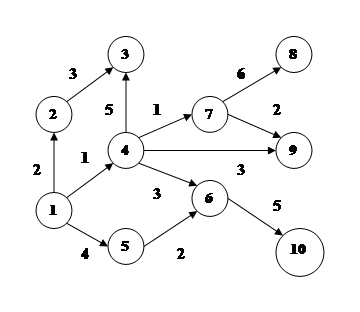 Рёбра графа – выполнение работы. Рёбра имеют длину, обозначающую продолжительность работы и направление, обозначающее последовательность выполнение работы.
