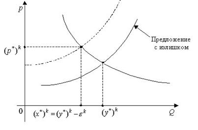 В то же время, следует признать отсутствие экономически осмысленного объяснения существования товара с нулевой ценой. Объявление такого товара «свободным» представляется несостоятельным. Строго говоря, в экономике нет свободных товаров, любой побочный продукт может найти применение, т.е. имеет ненулевую цену. Трудно согласиться и с «хорошо известной экономистам модификацией закона спроса и предложения о существовании перепроизводимых товаров с нулевой ценой», поскольку в случае перепроизводства «спрашиваемая» часть этого товара продается по ненулевой цене. Для экономики существование излишек так же плохо, как и существование дефицита. Все это говорит в пользу целесообразности определения равновесия в виде (2.13).