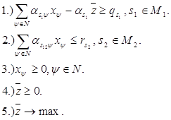Условия (1) из модели (1) означают балансы производства и распределения продукции, условия (2) - балансы невоспроизводимых ресурсов.
