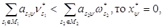 Будем исходить из того, что для оптимального плана (п1 + m1) ограничений выполняются как равенства, а остальные (п – 1) + (т – m1) ограничений выполняются как строгие неравенства. Перенумеруем все исходные ограничения так, чтобы первые (п1 + m1) ограничений выполнялись как равенства, а остальные – как неравенства.