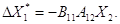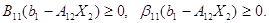 Формулы (11) и (12) характеризуют зависимости оптимальных интенсивностей производственных способов и максимального числа комплектов от «жестких» ограничений задачи. Коэффициенты матрицы B11 являются аналогами коэффициентов полных потребностей в продукции модели межотраслевого баланса. Однако эти коэффициенты могут иметь различные знаки, также как и коэффициенты вектора β11.