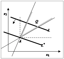 Оптимальное решение этой модели всегда существует и является единственным. Оптимальный план Y* есть точка касания наиболее удаленной от начала координат поверхности безразличия и выпуклого многогранника, образованного условиями