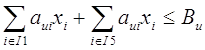 где I1 – множество трансформируемых земельных угодий; aui - норматив капитальных вложений на единицу пополняемого ресурса; u – индекс капитальных вложений; I5 – множество видов животноводческих помещений; Bu – возможный объем капитальных вложений.